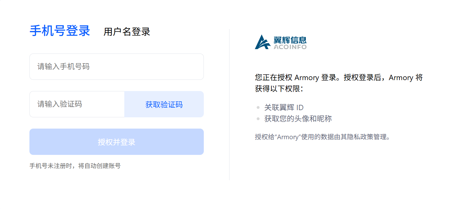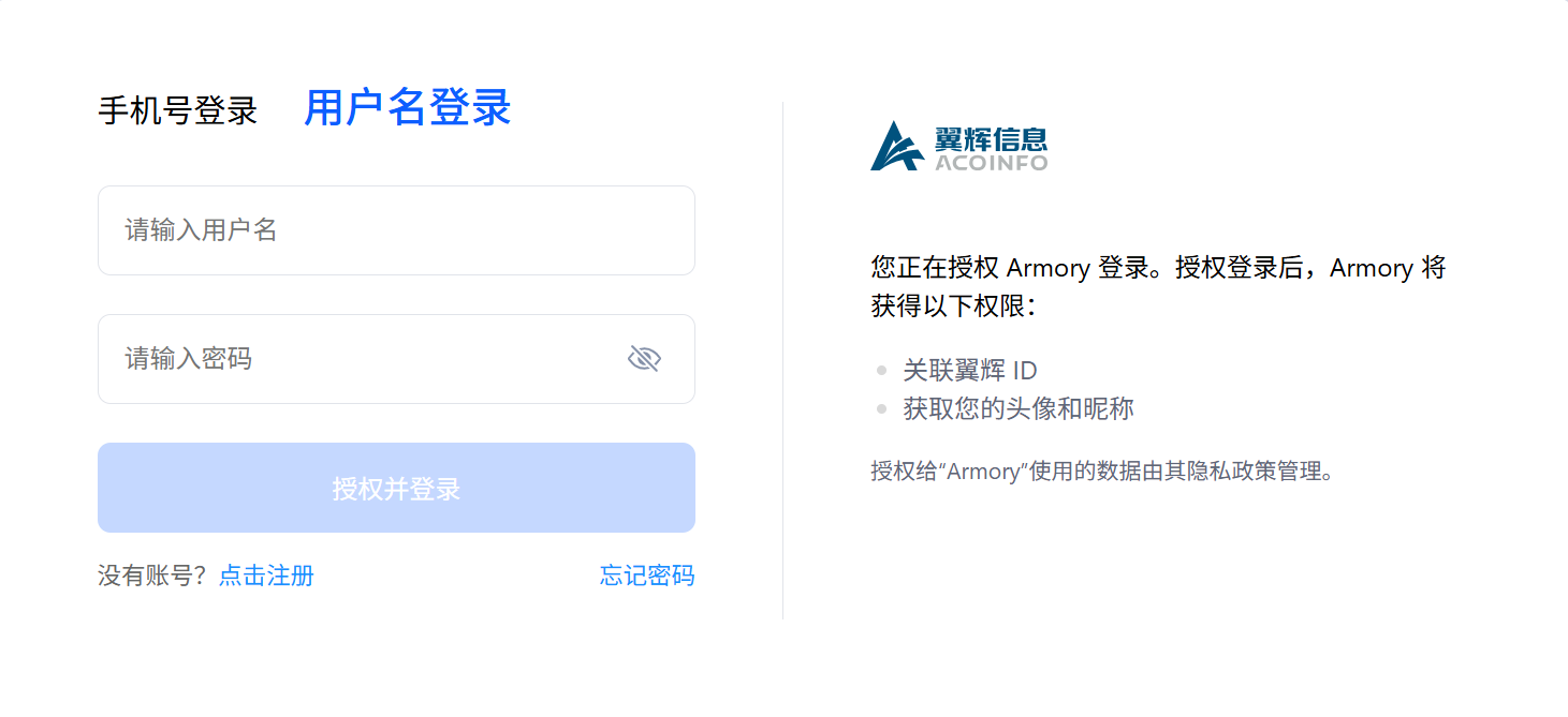 在翼辉 ID 登录页面,可通过以下两种方式登录 Armory: