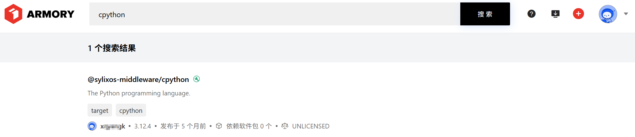 在页面顶部搜索框中输入软件包名称、描述或标签等信息,找到目标软件包并进入详情页。