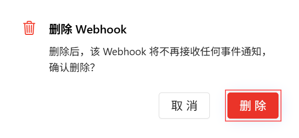 在删除 Webhook 确认框中,单击删除,完成 Webhook 删除。