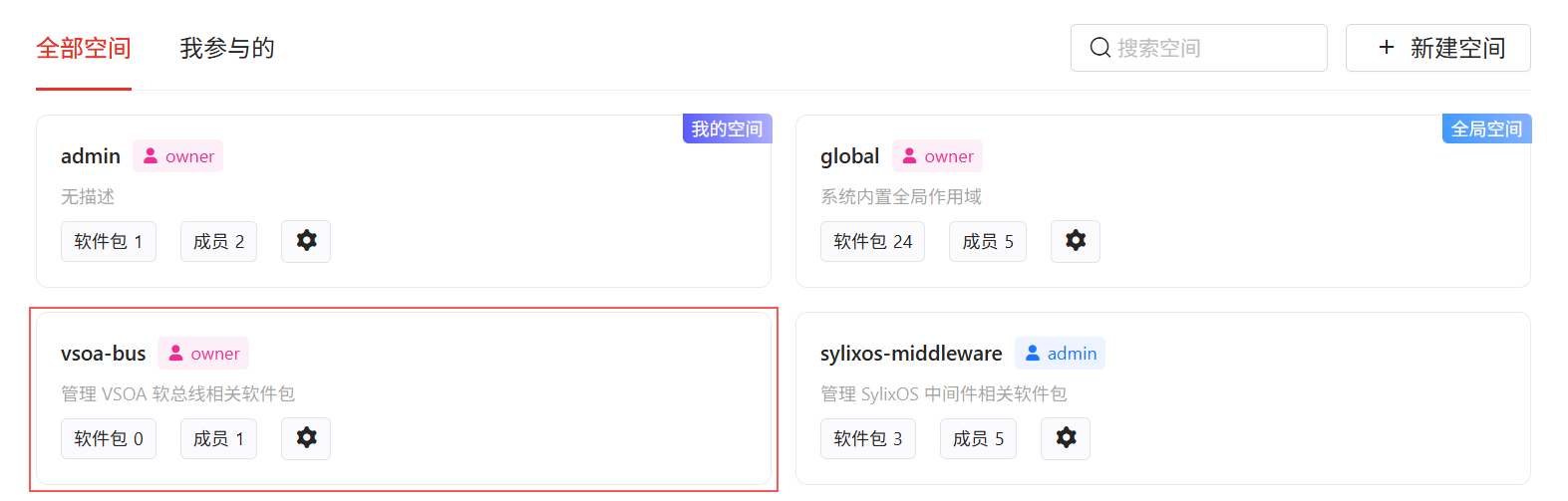 单击确定,完成空间新建。创建者默认为空间所有者(owner 角色)。