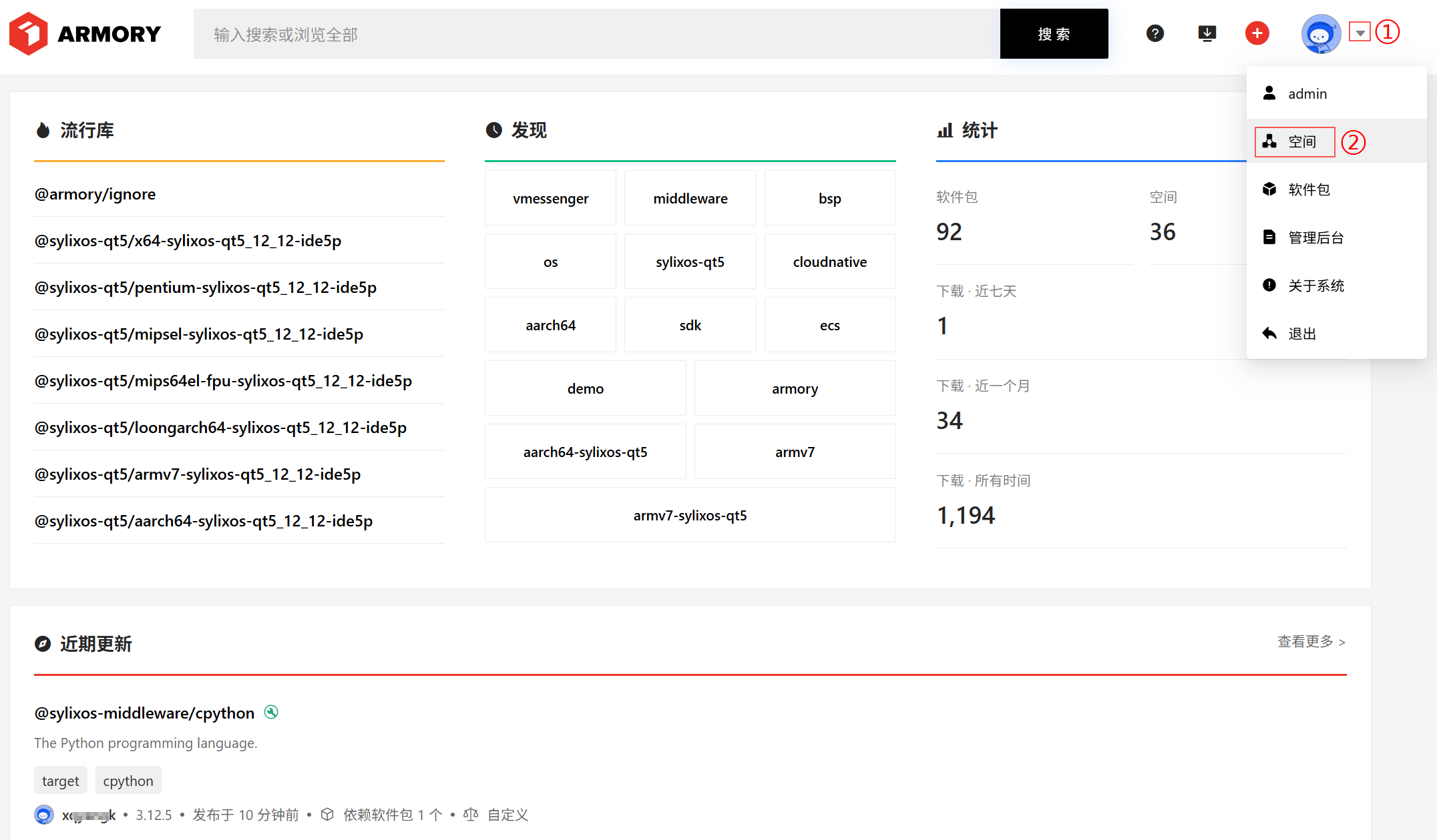 - 个人空间:每位用户在首次使用 Armory 时可创建个人空间,用于发布个人软件包,无需系统管理员审批。