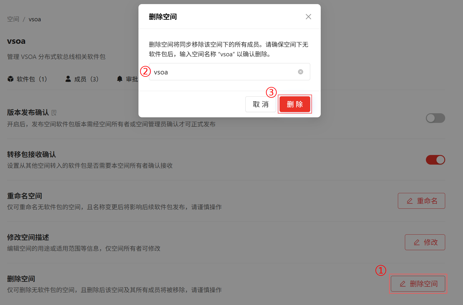 当不再需要管理某个空间,或存在冗余的空间数据时,可以将其删除,以保持空间列表的整洁。