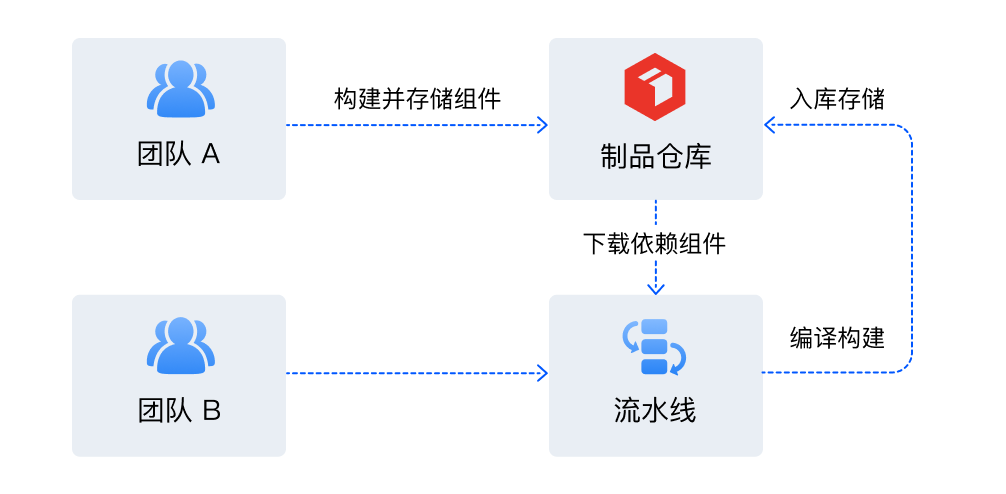 在多团队协作开发中,制品仓库可作为共享组件的统一存储平台,用于管理各团队在开发过程中生成的库、模块或中间产物。其他团队可按需从仓库拉取依赖项,避免重复构建与维护,实现跨团队的高效协作和代码复用。